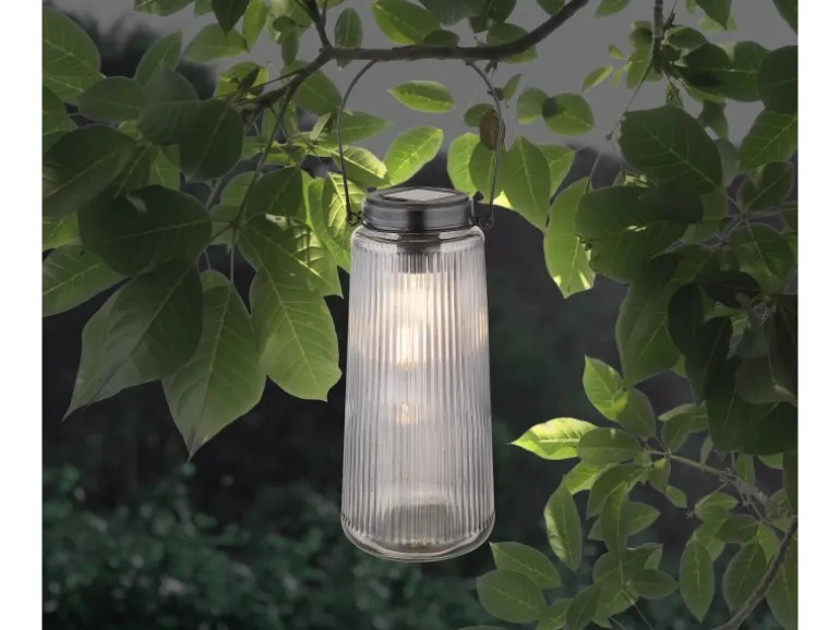 Mit einem praktischen Druckschalter zur einfachen Bedienung und der IP44 Schutzklasse für die Nutzung im Freien ist diese Solarleuchte funktional und dekorativ zugleich. Bringen Sie mit dieser schicken Laterne ein angenehmes Licht in Ihr Zuhause und schaffen Sie eine gemütliche Atmosphäre.