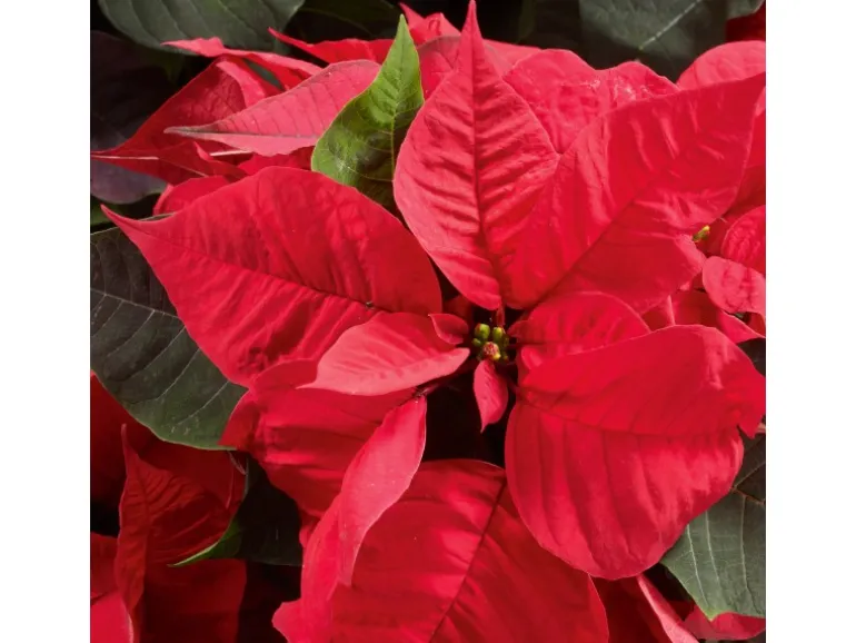 Charakteristisch für den Weihnachtsstern sind die sternförmigen Blüten und der strauchige Wuchs. Der Christstern von GROW by OBI bezaubert mit insgesamt 5-6 reizvollen Hochblättern (Brakteen), welche in einem kräftigen Rot leuchten und in einem hübschen Kontrast zu dem grünen Blattwerk stehen.