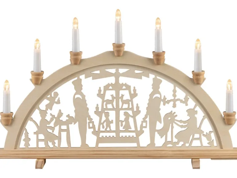 Der HGD Lichterbogen Pyramide ist ein klassicher Weihnachtsartikel mit 7-Riffelkerzen und warmweißem Licht. Der HGD Lichterbogen verzaubert Ihr Fenster in weihnachtliches Flair. Die Leuchtmittel sind warmweiß leuchtend und auswechselbar und das Produkt ist für den Netzbetrieb geeignet.