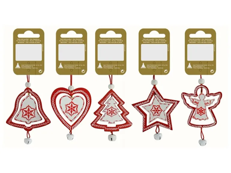 Fünf verschiedene Designs: Herz, Stern, Tannenbaum, Engel oder Glocke