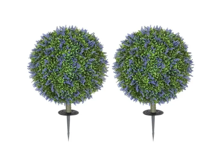 ● Zweiteiliges Set wertet das Dekor mit realistischen Lavendelbäumen auf