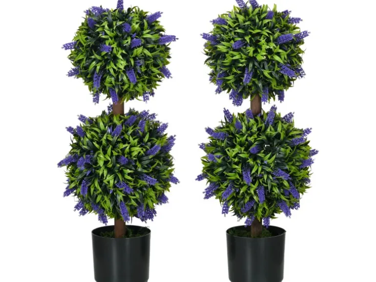 HOMCOM Künstliche Pflanzen 2er-Set UV-Beständig mit Lavendel