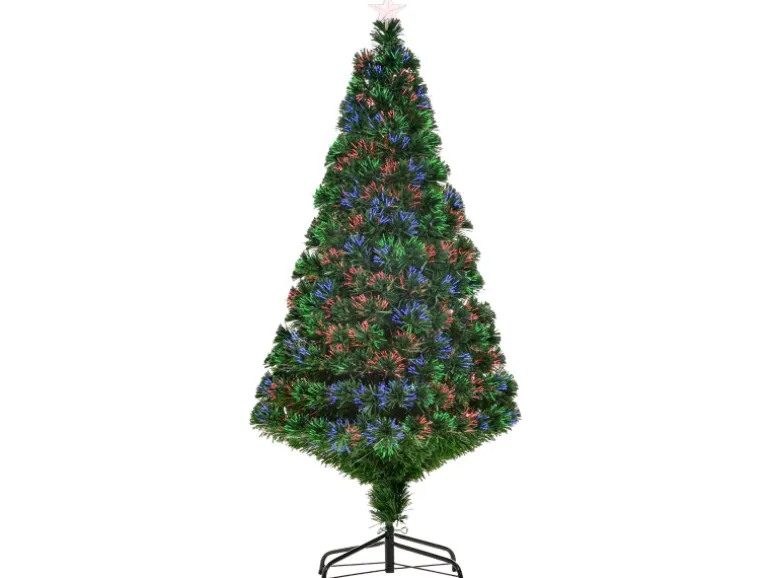 Lassen Sie sich von der festlichen Ausstrahlung dieses 1,5 m hohen Weihnachtsbaums von HOMCOM verzaubern! Er ist mit Lichtschmuck aus Glasfasern ausgestattet, der in Rot, Grün und Blau leuchtet. Unterschiedliche voreingestellte Muster schaffen genau die Stimmung, die Sie wünschen. Daneben bleibt der Baum schön voll und grün das ganze Jahr lang. Er ist mit einem Metallständer und einem Metallrahmen ausgestattet, die den Baum stabil und aufrecht halten.