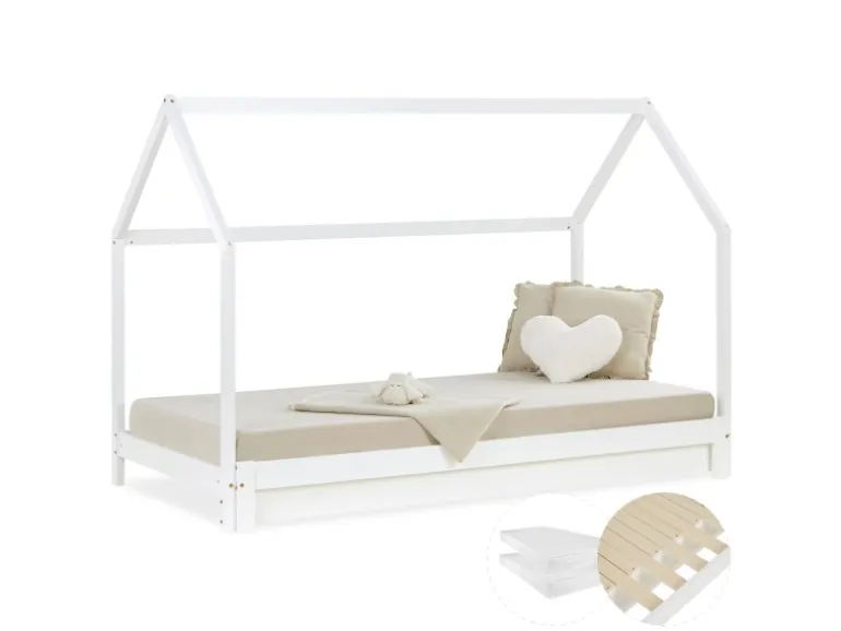Kinder Hausbett mit Lattenrosten und Matratzen, Aufbauanleitung, Montagezubehör