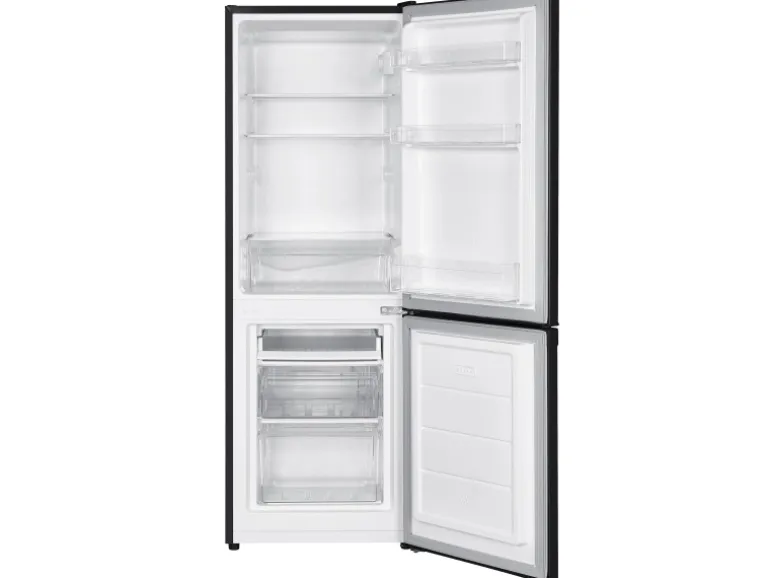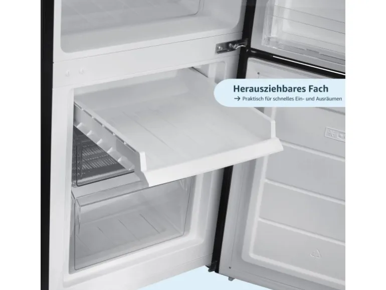 Mehr Frische, mehr Ordnung, mehr Flexibilität – die homeX Kühlgefrierkombination ist die ideale Lösung für Familien und Haushalte mit hohem Bedarf. Mit seinem großzügigen Fassungsvermögen von 173 Litern (121 Liter Kühlteil + 52 Liter Gefrierteil) bietet der freistehende Kühlschrank mit Gefrierfach ausreichend Platz für all Ihre Lebensmittel.Dank der LED-Beleuchtung behalten Sie stets den Überblick, während die präzise Temperaturregelung für ideale Frische sorgt.Die clevere Innenraumaufteilung sorgt für optimale Organisation:3 flexibel verstellbare Glasabstellflächen sorgen für vielseitige Aufbewahrung 1 geräumige Gemüseschublade hält Obst und Gemüse knackig frisch Praktische Türablagen: 2 normale Ablagen und 1 große Türablage für größere Flaschen 4-Sterne-Gefrierfach mit einem herausziehbaren Fach und 2 zusätzlichen Schubladen für TiefkühlwarenMit höhenverstellbaren Füßen und einem wechselbaren Türanschlag passt sich das Gerät perfekt an Ihre Küche an – egal, ob moderne Einbauküche oder klassisches Design.Technische Details:Energieeffizienzklasse: C – für geringen Stromverbrauch Maße (BxTxH): 49,5 x 56,0 x 142,5 cm – kompakt und platzsparend Lautstärke: 40 dB – angenehm leise im Betrieb Luftschallemissionsklasse: C Gewicht: 42 kg Jährlicher Energieverbrauch: 124 kWh Gefriervermögen: 2,6 kg/24h Klimaklasse: N/ST (16 – 38°C)Erleben Sie die perfekte Kombination aus Funktionalität, Flexibilität und modernem Design – die ideale Wahl für jede Küche!