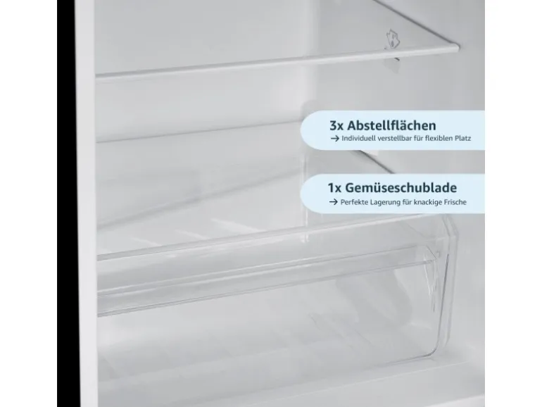 3x verstellbare Abstellflächen / 1x Gemüseschublade / 3x Türablagen / 4-Sterne-Gefrierfach
