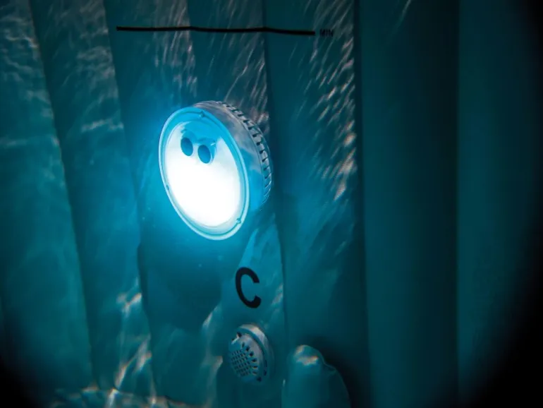 Die Intex LED Beleuchtung Pure Spa™ Bubble Kunststoff Weiß 12 x 12 x 6,5 cm bietet eine perfekte und angenehme Beleuchtung während Sie relaxen. Diese ist ganz einfach auf die Einströmdüse aufzuschrauben. Anhand zwei verschiedener Beleuchtungsmodi können Sie nach Belieben Ihr gewünschtes Ambiente schaffen. Modi 1: Farbwechsel (grün, hellblau, dunkelblau, violett), Modi 2: leuchtet in der gewählten Farbe (weiß, grün, hellblau, dunkelblau, violett). Ein automatischer Abschaltmodus beendet die Beleuchtung nach 2 Stunden. Es werden 3 Stk. AAA Batterien benötigt (nicht im Lieferumfang enthalten).