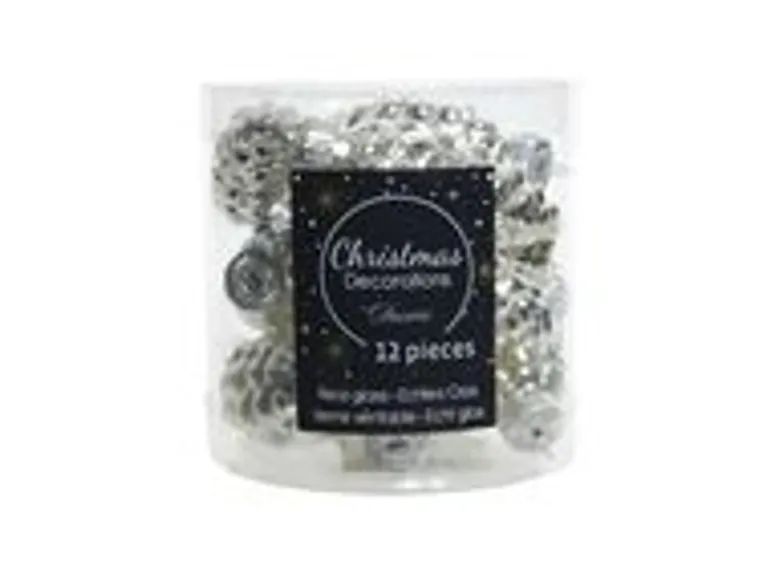 Kaemingk Christbaumschmuck Zapfen Glas  2,5 cm Laenge 6 cm 12 Stueck Silber