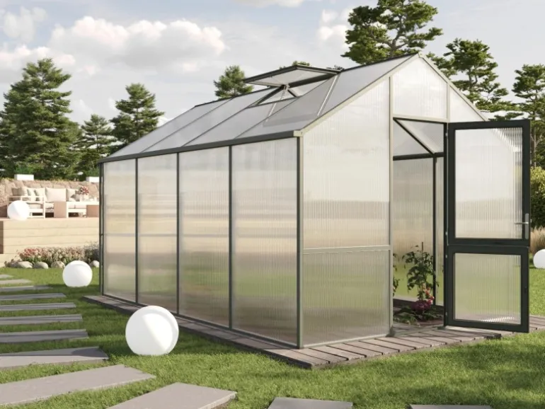 Die 16 mm starken UV-beständigen Doppelstegplatten sind sehr leicht und dadurch einfach zu montieren. Außerdem sind sie bruchsicher und bieten eine gute Isolierung sowie eine hohe Lichtdurchlässigkeit, wodurch deine Pflanzen ausreichend Sonnenlicht erhalten.