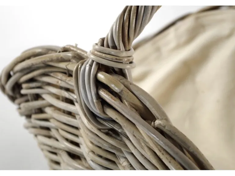 Halbrund Kaminholzkorb aus Rattan mit hellem Leinenbezug Natur und stilvoll