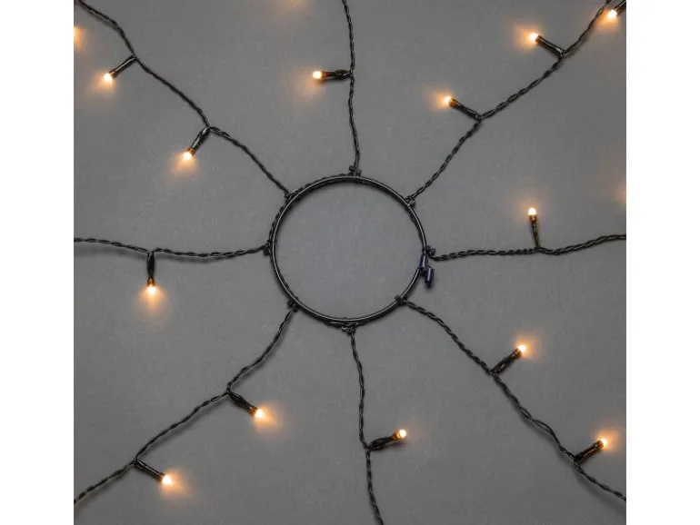 Der Baummantel ist bereits vormontiert und mit einem Ring Ø 11 cm ausgestattet, was die Installation besonders einfach und zeitsparend macht. Die 8 Stränge je 30 Dioden lassen sich problemlos an Ihrem Baum oder Dekorationsobjekt anbringen. Der gefrostete Look der Dioden sorgt für ein weiches, warmes Licht, das eine angenehme Atmosphäre schafft.