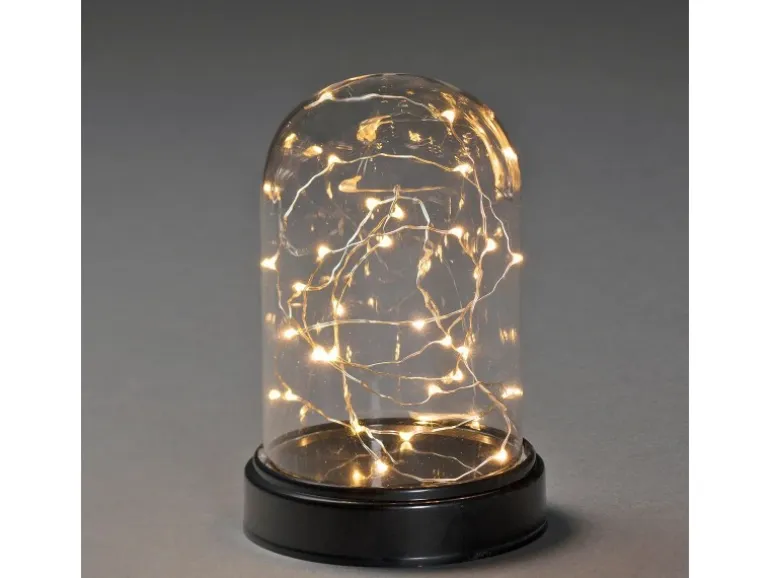 LED Dekoglaskuppel mit silberfarbenem Draht