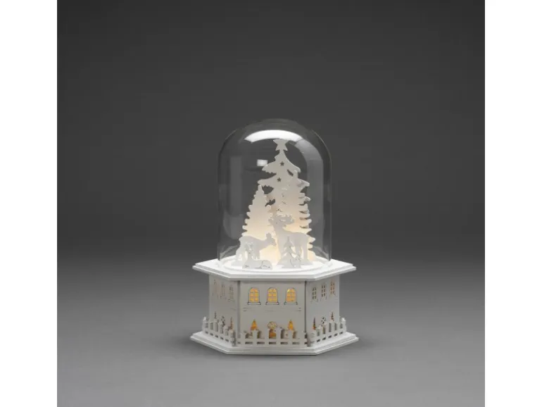 Konstsmide LED Holzsilhouette Rentiere und Bäume unter Glaskuppel