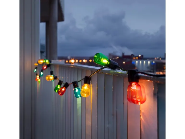 Die Lichterkette verfügt über 20 bunte Birnen und 40 warmweiße Dioden, sodass ein buntes, aber gemütliches Ambiente im Garten entsteht. Mit der leuchtenden Farbgebung wird die Lichterkette garantiert zum Blickfang in Ihrem Garten.