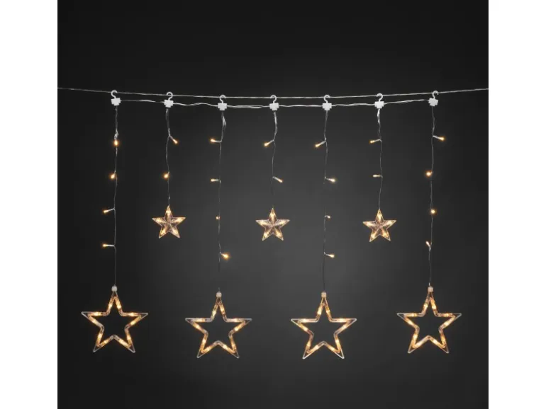 Vorhang auf für Fensterschmuck und Lichterglanz! Wenn Sie nach einem außergewöhnlichen Leucht Accessoire suchen, das magische Glanzpunkte in Ihren Räume bringt, liegen Sie mit diesem zauberhaften Lichtervorhang goldrichtig. An transparenten Kabeln scheinen die klar strahlenden Sterne fast zu schweben und durchbrechen stimmungsvoll die Dunkelheit. Ein unverwechselbares und langlebiges Markenprodukt, an dem Sie und Ihre Lieben dank ausgezeichneter Qualität und geprüfter Sicherheit „alle Jahre wieder“ Freude haben werden. Konstsmide ist seit über 40 Jahren auf die Herstellung hochwertiger Lichtdekorationen für den Innen und Außenbereich spezialisiert und seit 1999 maßgeblicher Impulsgeber für langlebige und sichere LED Lösungen.