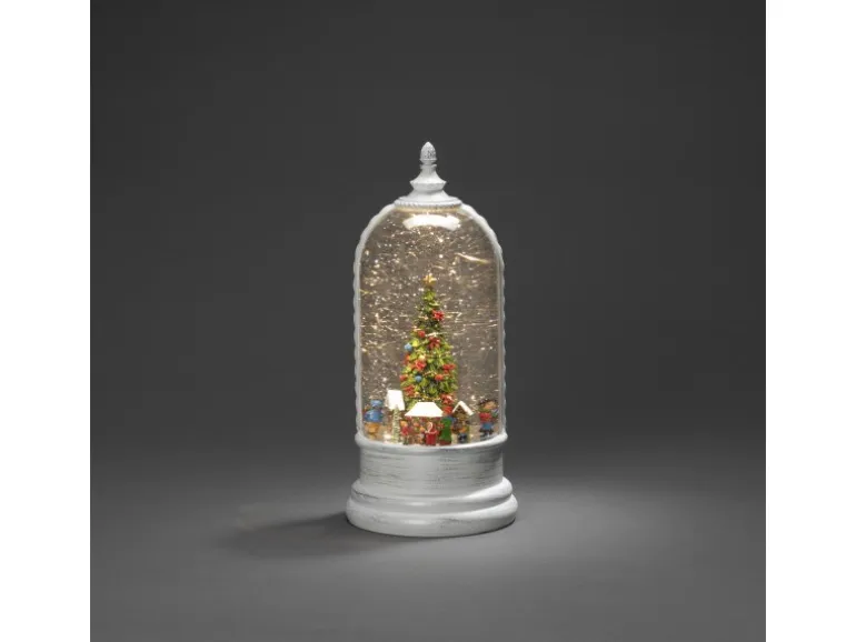 Let it Snow! Diese hochwertige, wassergefüllte Schneelaterne verzaubert mit nostalgischem Schneeflockentanz. Nahezu schwerelos wirbelt die weißglitzernde Pracht um die romantische Weihnachtsszenerie und reflektiert das warmweiße Licht der Diode. Der Anblick der Weihnachtsfiguren macht das Herz weit und lässt uns Weihnachten wieder mit Kinderaugen sehen. Ein sehr hochwertiges und geschmackvoll gestaltetes Nostalgieobjekt, das einen ganz besonderen Platz in Ihrem Interieur verdient. Durch die Stromversorgung mit 3 C Batterien müssen Sie bei der Platzwahl keine Kompromisse eingehen. Auch den 5 h Timer werden Sie schnell zu schätzen wissen, er sorgt dafür, dass das Licht abends automatisch nach 5 Stunden erlischt, um es am nächsten Abend wieder pünktlich für Sie aufleuchten zu lassen. Ein hochwertiges und langlebiges Markenprodukt, das Ihnen und Ihren Lieben viele Jahre Freude schenken wird. Die Firma Konstsmide ist seit 1942 auf die Herstellung hochwertiger Lichtdekorationen für den Innen und Außenbereich spezialisiert und seit 1999 maßgeblicher Impulsgeber für innovative, langlebige und sichere LED Lösungen.