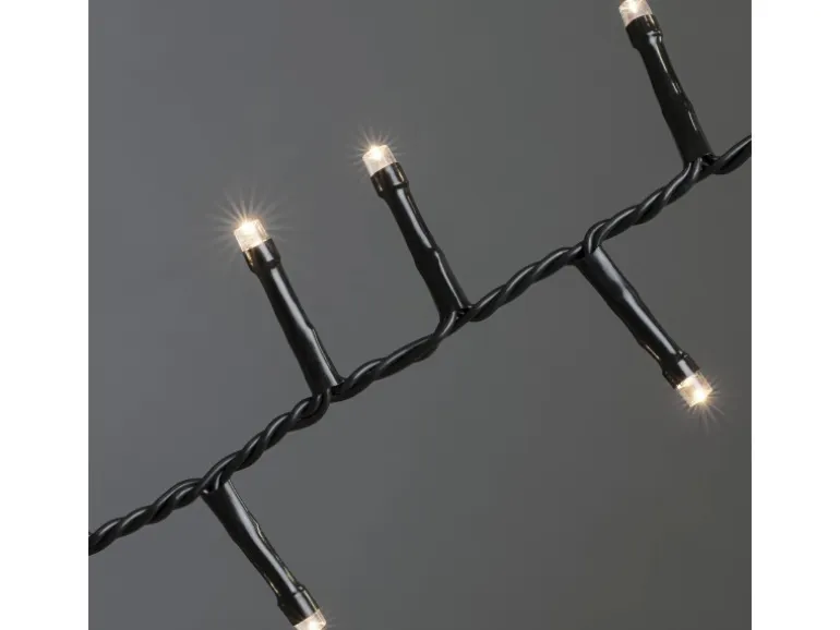 Das schwarze Kabel sorgt für einen dezenten Look und lässt sich unauffällig in die Umgebung integrieren. Die Lichterkette wirkt besonders edel an dunkleren Flächen oder im Garten.