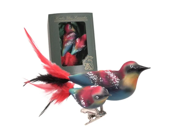 Krebs Glas Lauscha Baumschmuck Doppelvogel Bienenfresser Mehrfarbig 9cm