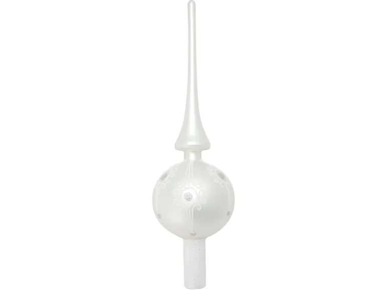 Die Designer-Baumspitze in Weiß/Silber Matt ist eine kunstvolle Ergänzung für Ihren Weihnachtsbaum. Mit einer Höhe von 28cm wurde sie mundgeblasen und handdekoriert, wodurch jedes Stück ein Unikat ist. Das barocke Dekor mit Weiß und Silber-Glitter verleiht Ihrem Baum eine elegante Note. Perfekt für alle, die Wert auf hochwertige und traditionelle Weihnachtsdekoration legen.