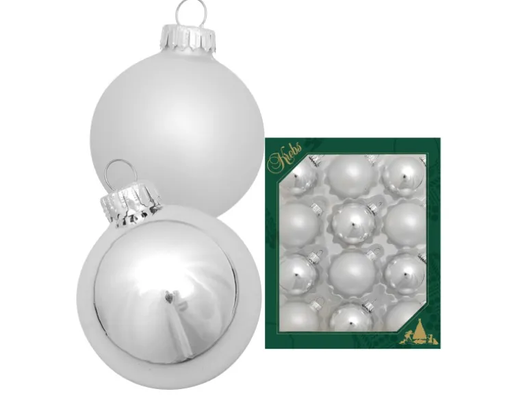 Das Sortiment besteht aus einer Kombination aus Silber Glanz und Satin-Finish, die sich perfekt ergänzen und dem Baum ein luxuriöses Aussehen verleihen.