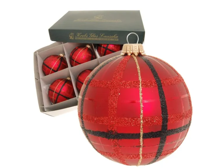 Krebs Glas Lauscha Weihnachtskugeln Tartan 6er-Set 8cm