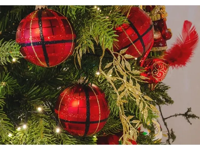 Unser exklusives Set aus 6 mundgeblasenen und handdekorierten Glaskugeln Tartan Bordeaux ist der perfekte Baumschmuck für eine traditionelle Weihnachtsatmosphäre. Jede Kugel ist 8cm groß und besticht durch ihr edles Bordeaux Satin-Finish. Das klassische Karo-Glitterdekor verleiht dem Baum einen festlichen Glanz. Veredle deinen Weihnachtsbaum mit diesem hochwertigen Sortiment und genieße die traditionelle Eleganz dieser Glasornamente.