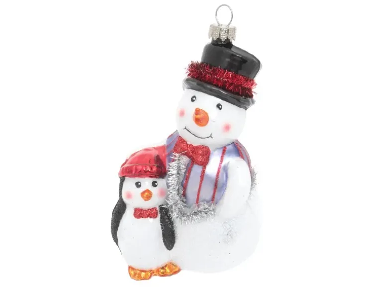Krebs Glas Lauscha Weihnachtsornament Schneemann und Pinguin 1-tlg. 5cm