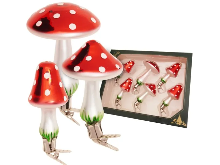 Krebs Glas Lauscha Weihnachtsornamente Pilzsortiment 6-tlg. 10-13cm