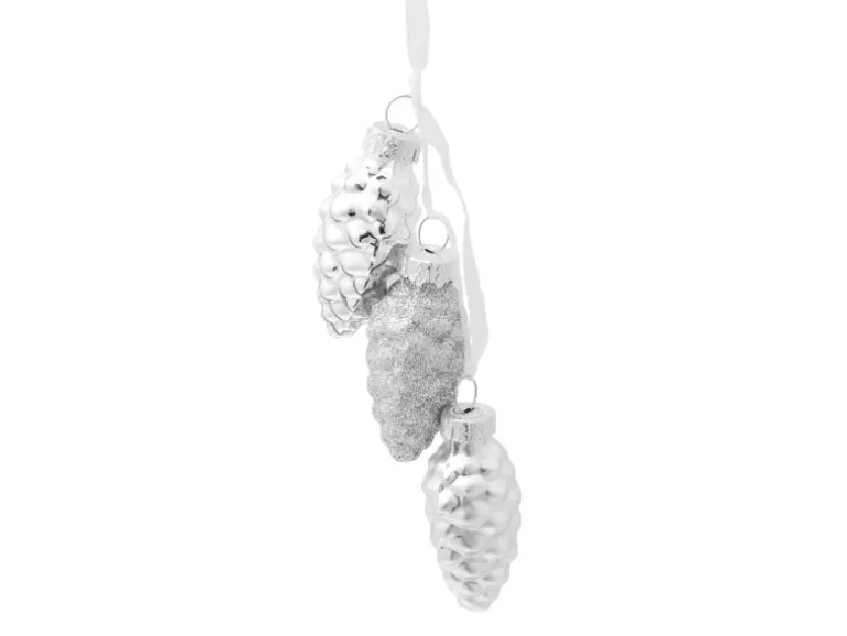 Krebs Glas Lauscha Weihnachtsornamente Silber Tannenzapfen 6er-Set 8cm