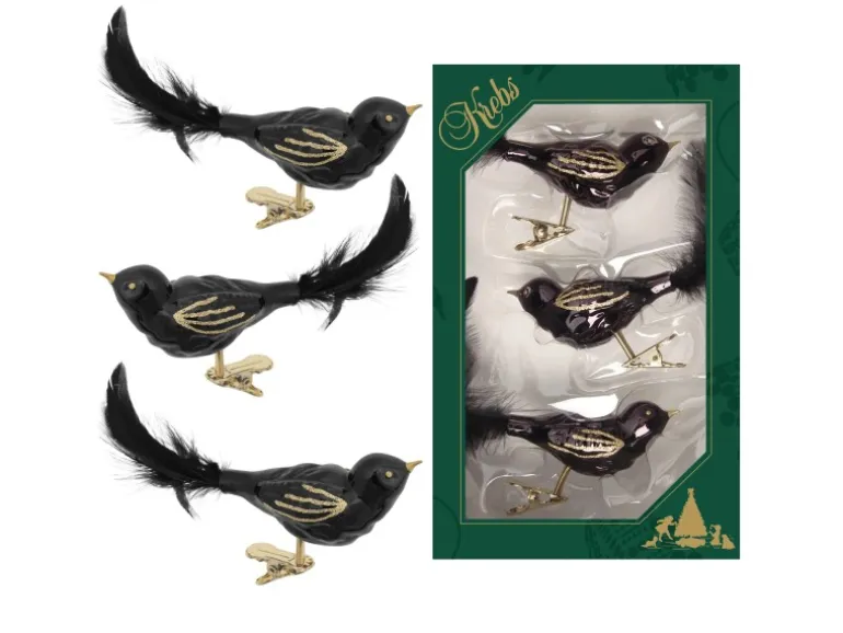 Krebs Glas Lauscha Weihnachtsornamente Vogel 3er-Set 7cm