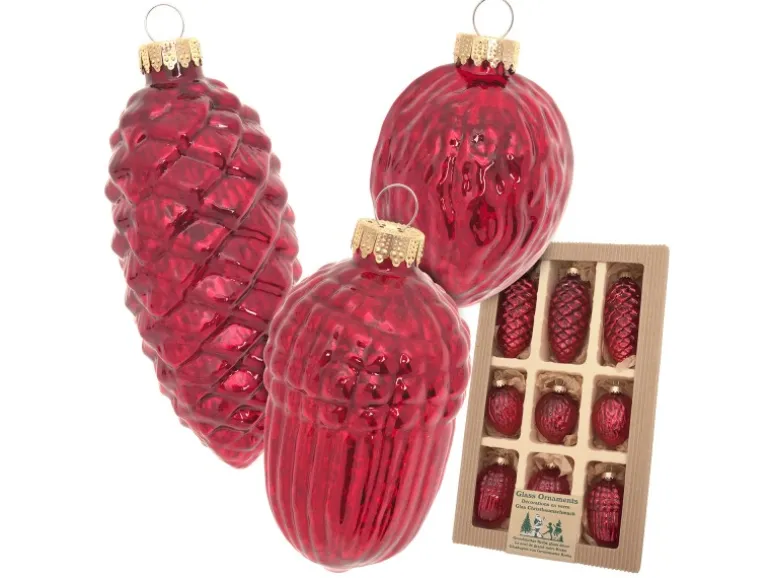 Krebs Glas Lauscha Weihnachtsornamente Zapfen und Nüsse Effektrot 9-tlg. 5cm