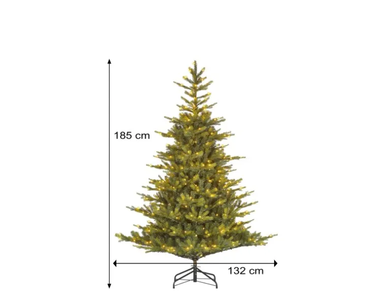 Mit einer Höhe von 185 cm und einem Durchmesser von 132 cm ist er ein beeindruckender Blickfang für jedes Weihnachtsfest. Die hochwertige Verarbeitung sorgt für ein besonders realistisches Aussehen.