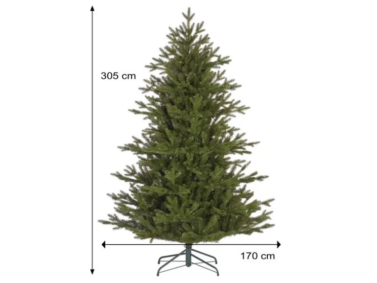 Mit einer Höhe von 305 cm und einem Durchmesser von 170 cm bietet dieser hochwertige, grüne Baum eine realistische Optik und Fülle dank seiner 4.510 detailreichen Tips.