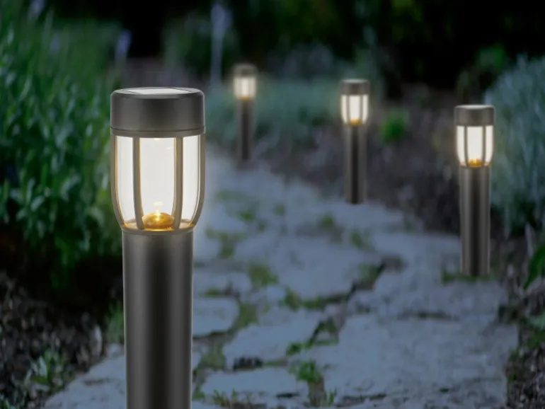 Solarbetriebene LED-Wegeleuchte zur indirekten Beleuchtung im Garten