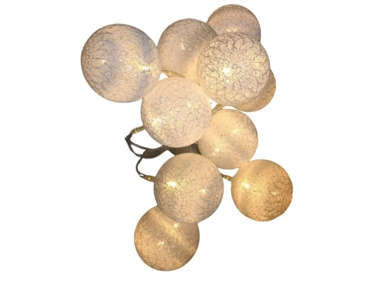 Tauchen Sie Ihre Umgebung in ein zauberhaftes Licht mit unserer 10er Kugellichterkette, deren Kugeln mit edlen Raffia-Fasern in strahlendem Weiß umhüllt sind.