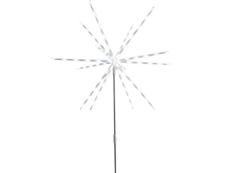 Schaffen Sie mit diesem eleganten LED Polarstern einen festlichen Blickfang in Ihrem Garten oder Außenbereich. Ausgestattet mit 70 strahlenden LEDs sorgt der Polarstern für ein sanftes, stimmungsvolles Licht und bringt winterliche Magie in jede Umgebung. Der robuste Erdungsstift ermöglicht eine stabile Platzierung im Boden, ideal für Beete, Rasenflächen oder Eingangsbereiche. Der Polarstern besteht aus langlebigem Kunststoff und ist dank der Schutzklasse IP44 spritzwassergeschützt, was ihn perfekt für den Einsatz im Freien macht. Die praktische Timerfunktion (6 Stunden an, 18 Stunden aus) sorgt für eine energiesparende und automatische Steuerung der Beleuchtung. Zudem ist der Polarstern batteriebetrieben, was Ihnen maximale Flexibilität bei der Platzierung bietet – ganz ohne störende Kabel oder Steckdosen. Dieser leuchtende Stern bringt einen Hauch von winterlicher Eleganz in Ihren Garten und ist die perfekte Dekoration für die Weihnachtszeit und darüber hinaus!