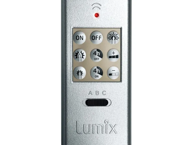 – Silberfarbene Lumix SuperLight Fernbedienung (inkl. 1x CR2032 Batterie)