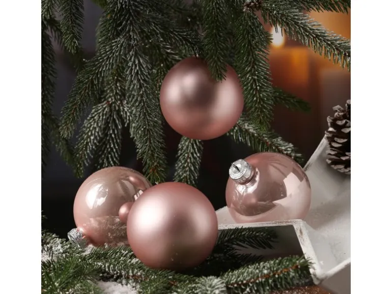 Die wunderschönen zarten puderrosa Christbaumkugeln aus Glas sorgen nicht nur am Weihnachtsbaum in Deiner Wohnung für eine festliche Stimmung. Die Baumkugeln sehen auch besonders gut als Deko für Fenster, Schalen und Glasgefäße aus. Aber auch im Adventskranz, in Adventssträußen oder Gestecken können die Christbaumkugeln hervorragend dekoriert werden.
