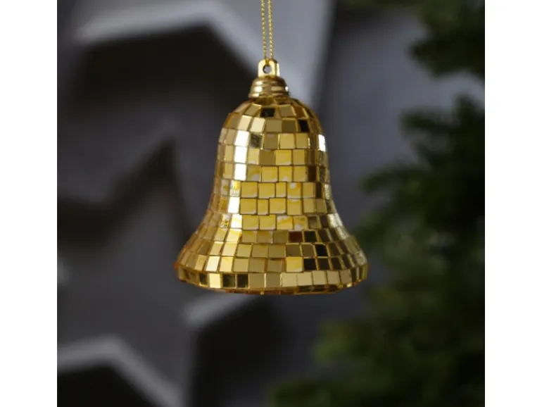 Dekorative Glocke, die mit kleinen Spiegeln besetzt ist. Diese weihnachtliche Dekoration eignet sich sowohl als Baumschmuck, als auch zur Dekoration von Schalen, Kränzen und Zweigen.