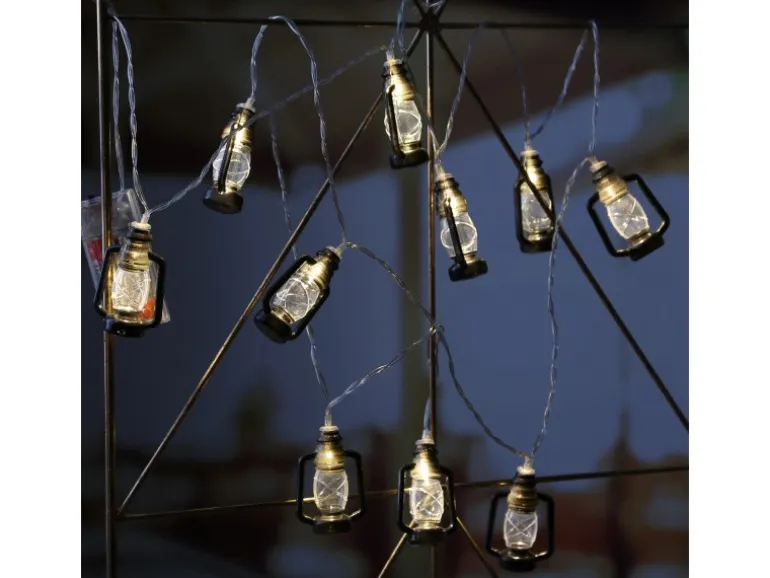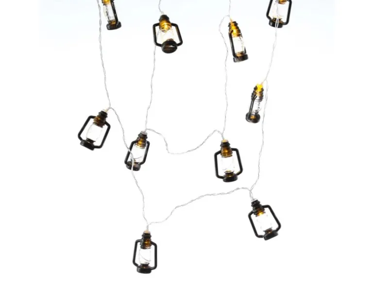LED Lichterkette mit 10 schwarzen Mini Sturmlaternen