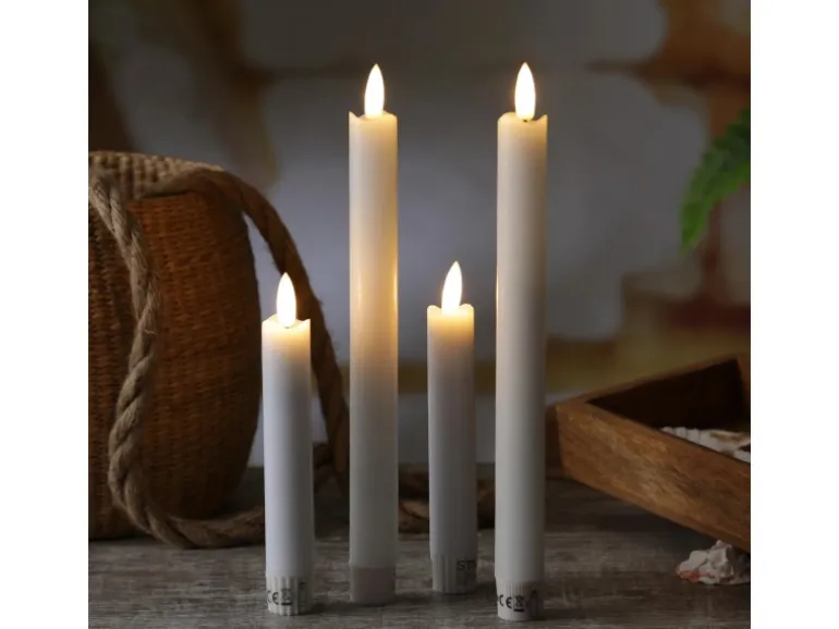 Diese 2 LED Stabkerzen leuchten in einem realistischen warmweißen Farbton. Die 3D Flamme zeigt ein leichtes Flackern, das eine romantische und gemütliche Atmosphäre erzeugt.Die LED Tafelkerzen sind perfekt zur Tischdekoration. Auch bei Events wie Hochzeiten oder Familienfeiern werden sie gerne eingesetzt.