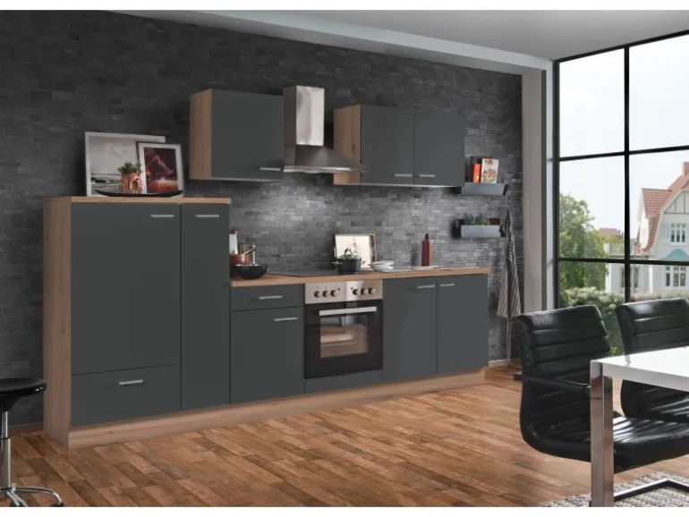 Moderne Küche in eleganter Optik mit Fronten in Graphit und Korpus aus Artisan-Eiche Nachbildung