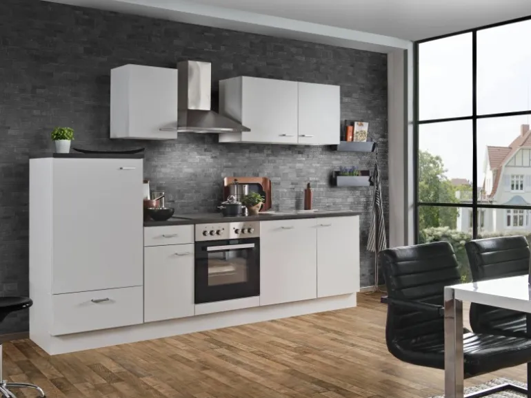 Mit Glaskeramik-Kochfeld, Backofen EEK: A und Kaminhaube EEK: B für angenehmes Kochen