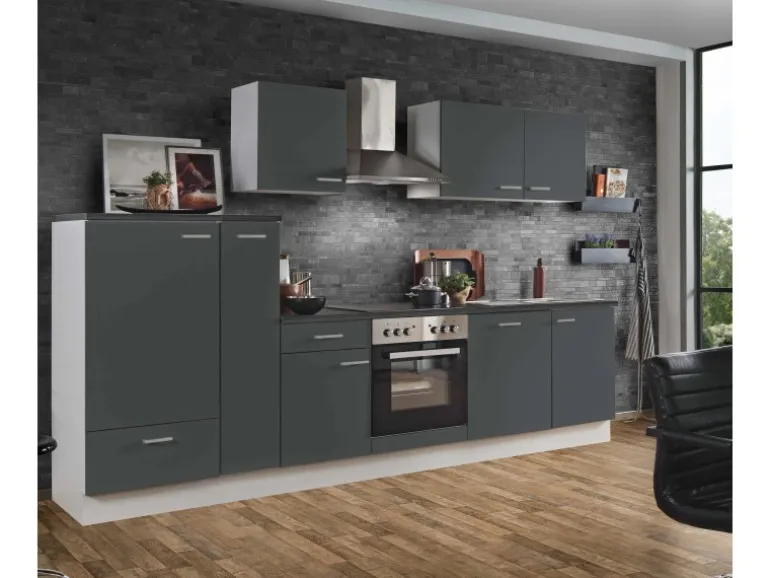 Stilvolle Einbauküche in trendigem Schiefergrau