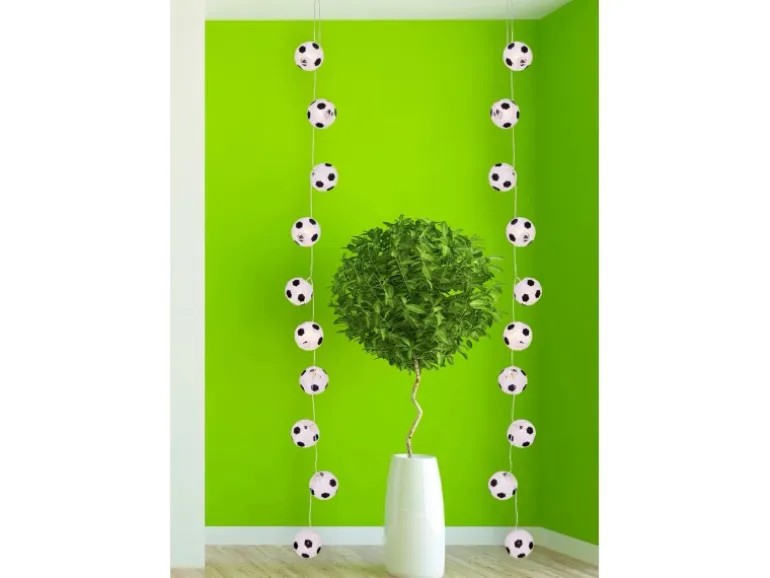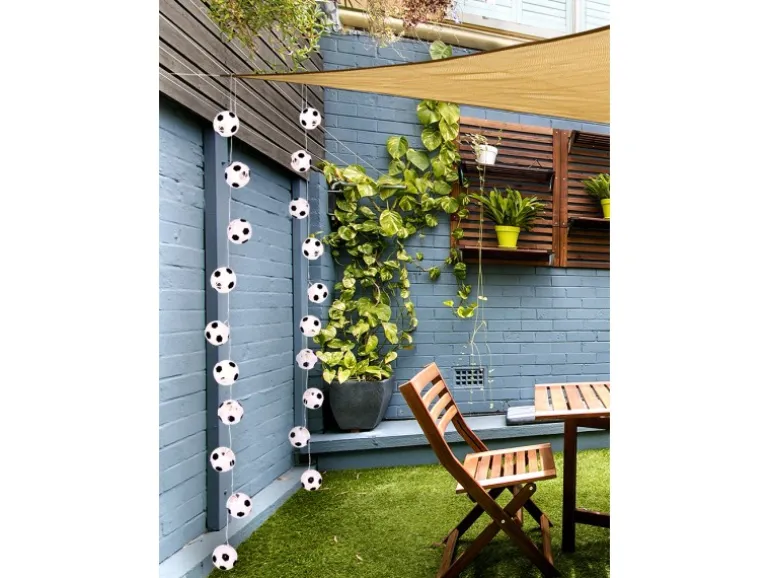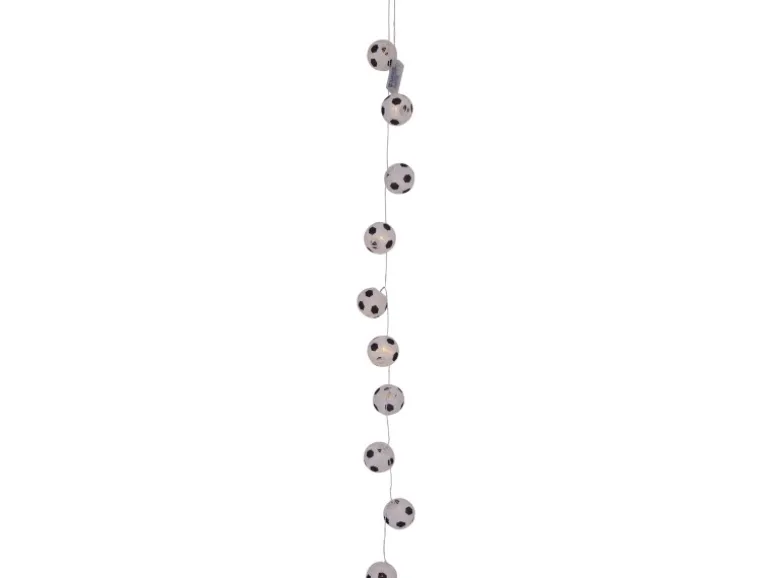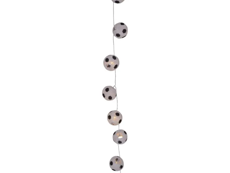 Mit der Näve Japanballon-10er-Lichterkette Fußball setzen Sie leuchtende Fußball-Akzente in Ihrem Zuhause. Die einzelnen Fußbälle aus Papier strahlen in einem angenehmen, warmweißen Licht. Die Fußbälle haben einen Durchmesser von 7,5 cm. Die Lichterkette hat eine Gesamtlänge von 160 cm inklusive 30 cm Zuleitung. Der Abstand der einzelnen Lampen beträgt 15 cm. Die Lichterkette ist Batteriebetrieben und befreit sie somit zum einen von einer lästigen Zuleitung.