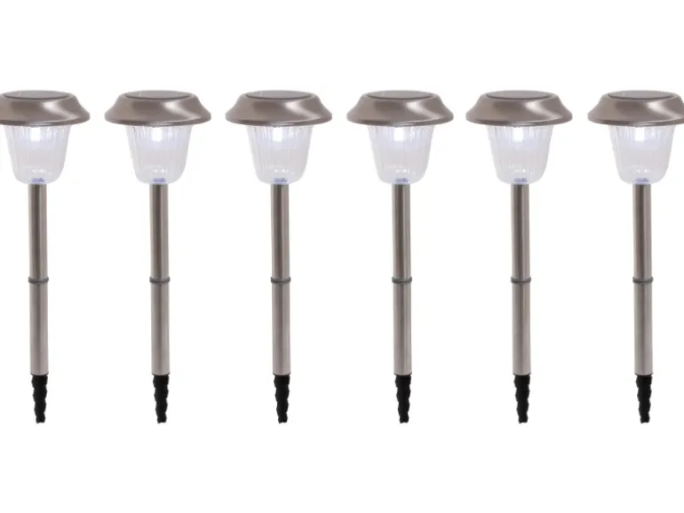 Näve LED-Außenleuchte mit Erdspieß aus Edelstahl 6er-Set 39 cm