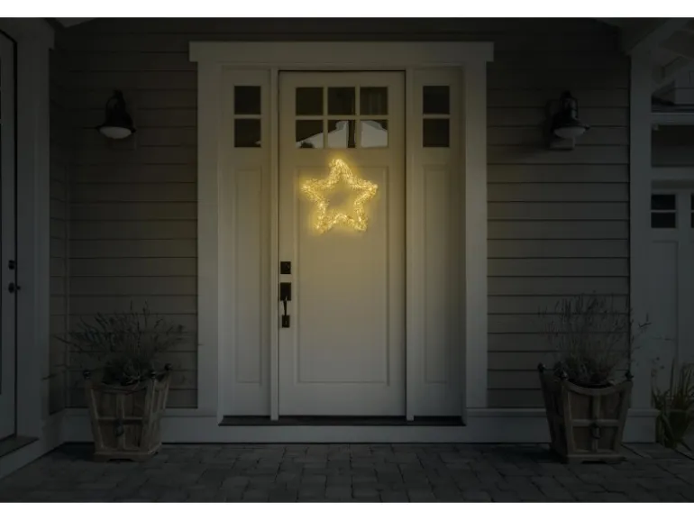 Ein Star wird geboren – glänzende Aussichten nicht nur zu Weihnachten: Dieser Deko-Stern von Näve ist ein Modell, das Sie überall dort anbringen können, wo ein wenig Glamour und Glitzer gut passen. Der Stern ist vom Design her sehr fragil und anmutig und setzt, egal, ob Sie ihn als Licht in der Nacht oder tagsüber nutzen wollen, in jedem Raum einen bezaubernden Akzent, der nicht nur die Augen zum Leuchten bringt. In diesen Stern ist auch ein Batteriefach integriert, damit können Sie also gleich in die Festtagsbeleuchtung einsteigen. Am Ein- bzw. Ausschalter plus Timer können Sie individuell Ihre Leuchtvorstellungen umsetzen