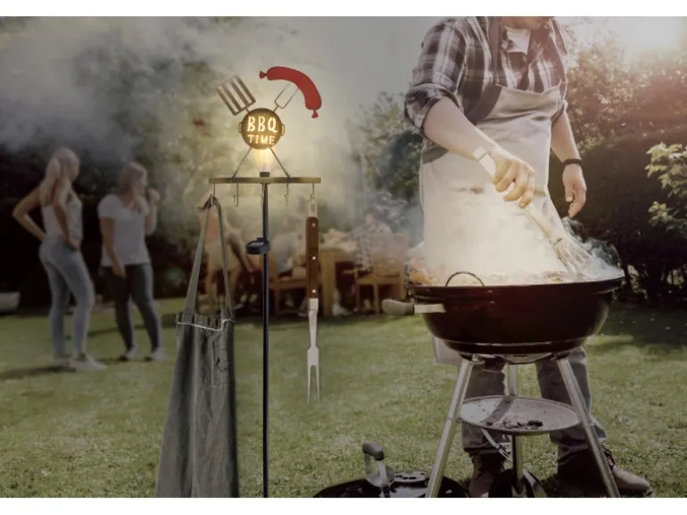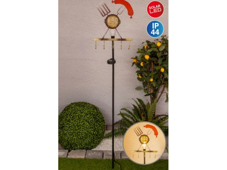 Der LED– Solar-Erdspieß von Näve im BBQ – Design ist perfekt für jeden BBQ – Liebhaber und sorgt für eine gute Stimmung bei jeder Grillparty. Grill – Equipment kann an den praktischen Haken des Spießes aufgehängt werden. Dank des Solarbetriebs verbraucht die Leuchte keinen Strom und man muss sich keine Gedanken über das Aufladen eines Akkus oder das Wechseln der Batterien machen.