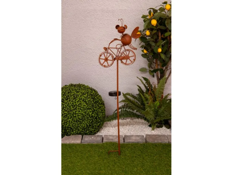 Der LED-Solar-Erdspieß von Näve verschönert Ihren Garten und zaubert jedem vorbeigehenden Betrachter ein Lächeln ins Gesicht. Durch das lustige Motiv eines Schmetterlings, der auf einem Fahrrad fährt, wird in jedem die gute Sommerstimmung geweckt. Dank des Solarbetriebs verbraucht die Leuchte keinen Strom und man muss sich keine Gedanken über das Aufladen eines Akkus oder das Wechseln der Batterien machen.
