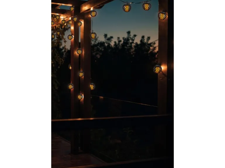 Die hochwertige, schwarze Lichterkette aus Kunststoff spendet ein sanftes, angenehmes Licht und ist mit 10 LED-Leuchtmitteln ausgestattet. Sie eignet sich sowohl für den Innen- als auch den Außenbereich und ist dadurch vielseitig einsetzbar.